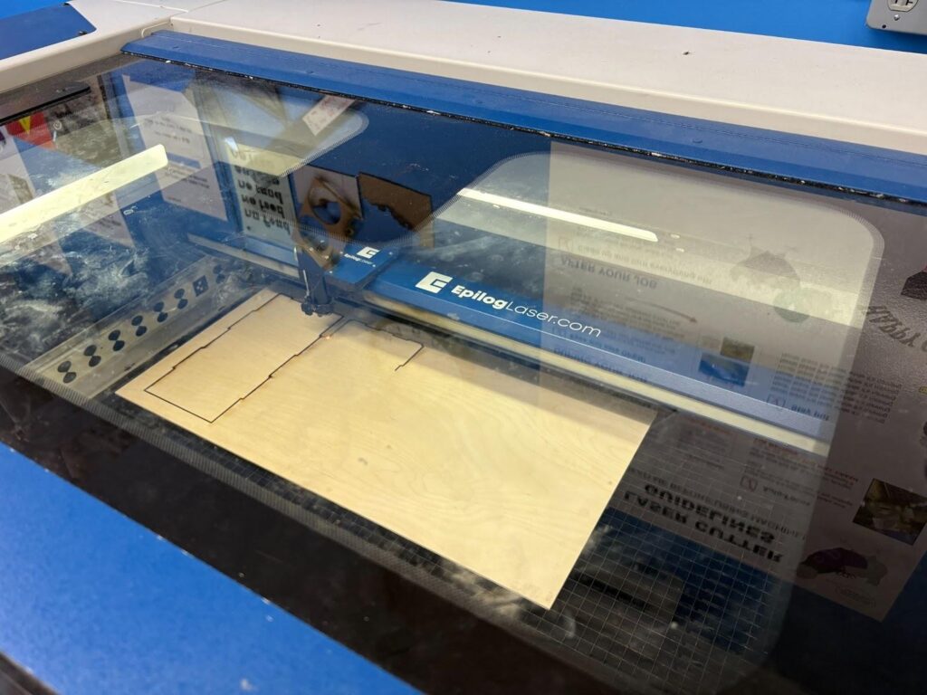 In our first attempt, Lucas tried to build a base for the candy dispenser by laser cutting plywood. However, he forgot to account for the kerfing tolerance when designing the plywood pieces, and at that time he also hadn’t fully solved the problem of securing the servo motor.